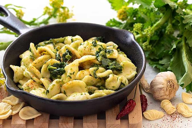 I found this quick and easy recipe on the website www.italianfoodforever.com after I’d enjoyed the dish while travelling in Puglia. It’s great for using the leafy parts of root vegetables…